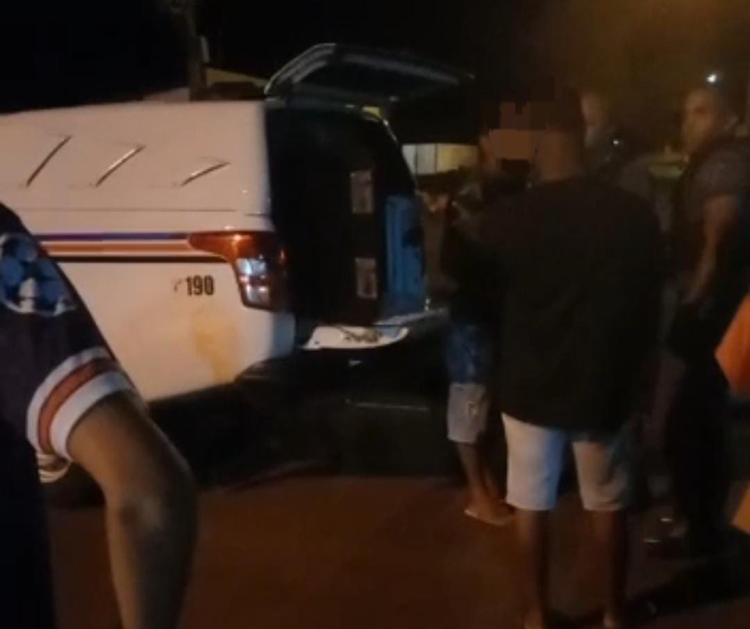 O conduzido foi entregue sem lesões corporais e foi necessário o uso de algemas pois o mesmo estava muito alterado