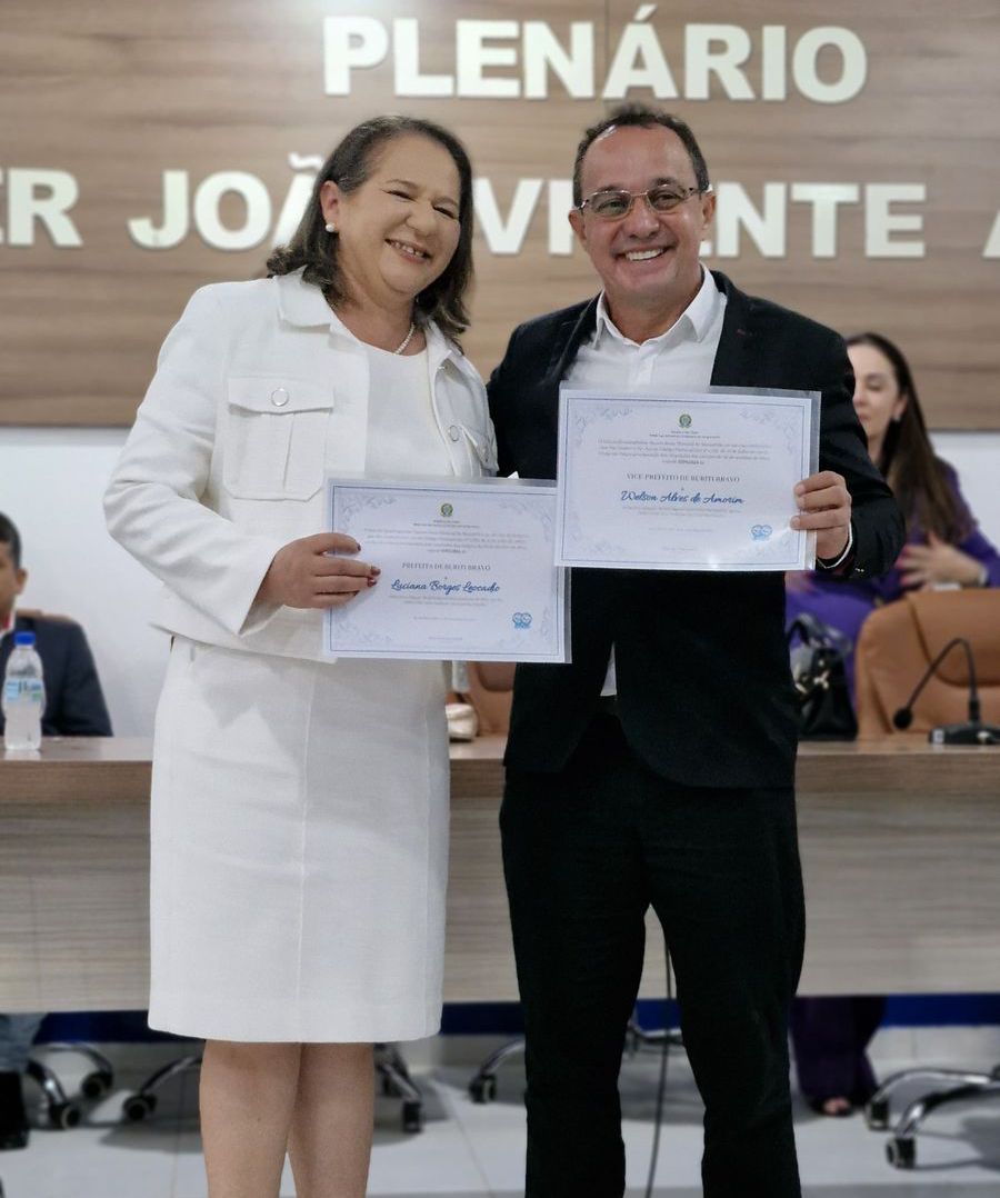 Nesta sexta-feira, 20 de dezembro, a Câmara Municipal de Buriti Bravo foi palco de uma solenidade marcada pela emoção e pela reafirmação do compromisso com o futuro da cidade. A prefeita Luciana Leocádio foi oficialmente diplomada para seu segundo mandato, ao lado do vice-prefeito Welson Amorim. O evento também diplomou os vereadores eleitos, bem como os suplentes, que irão compor o legislativo municipal no próximo mandato.