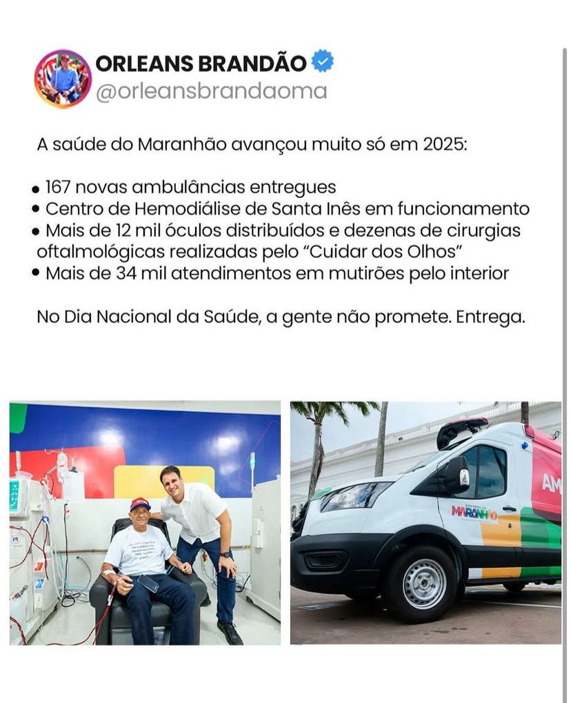 Orleans enfatizou que os resultados vão além de promessas, evidenciando o compromisso com a população maranhense. “Celebramos não apenas os resultados, mas o compromisso de cuidar de quem mais precisa, em cada canto do nosso estado”, afirmou. As ações reforçam o investimento em saúde básica e especializada, alcançando dezenas de municípios e fortalecendo o sistema público de saúde do Maranhão.