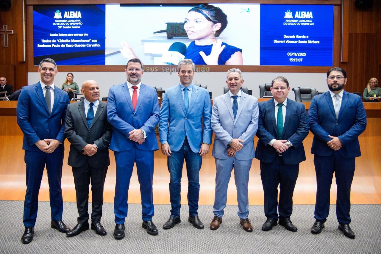 Os tabeliães Paulo de Tarso Guedes Carvalho, do 2º Tabelionato de Protesto de São Luís; Devanir Garcia, do Cartório do 2º Ofício da Comarca de Açailândia; e Diovani Alencar Santa Bárbara, titular do Cartório de São João dos Patos, foram agraciados, em sessão solene realizada pela Assembleia Legislativa do Maranhão, nesta quinta-feira (6), com Título de Cidadão Maranhense. O ato ocorreu no Plenário Nagib Haickel e foi proposto pelo deputado Neto Evangelista (União Brasil).
