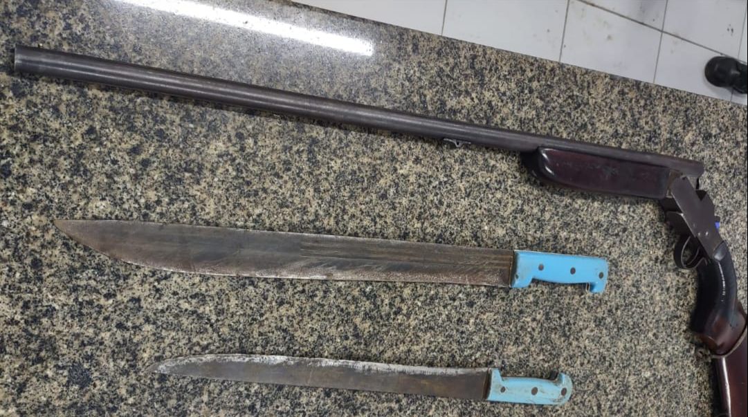 Diante dos acontecimentos, tanto a arma de fogo quanto o agressor, acompanhado de duas armas brancas adicionais, foram encaminhados à Delegacia Regional de São João dos Patos.