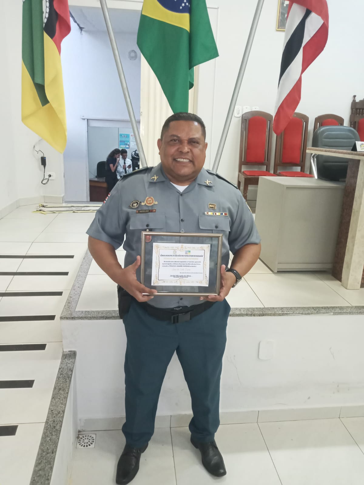 A Câmara Municipal de São João dos Patos concedeu, o Título de Cidadão PATOENSE ao Subtenente da Polícia Militar do Maranhão, Jean.